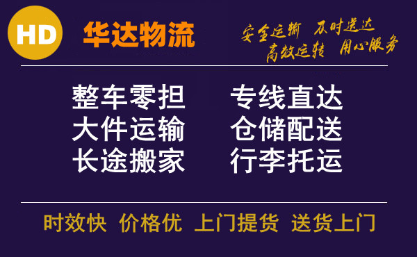整車快運:全程箱車運輸,確保貨物運輸過程中包裝及貨物品質的高度安全,全程GPS車載定位系統實時監控,華達物流讓您隨時隨地掌控貨物在途信息。